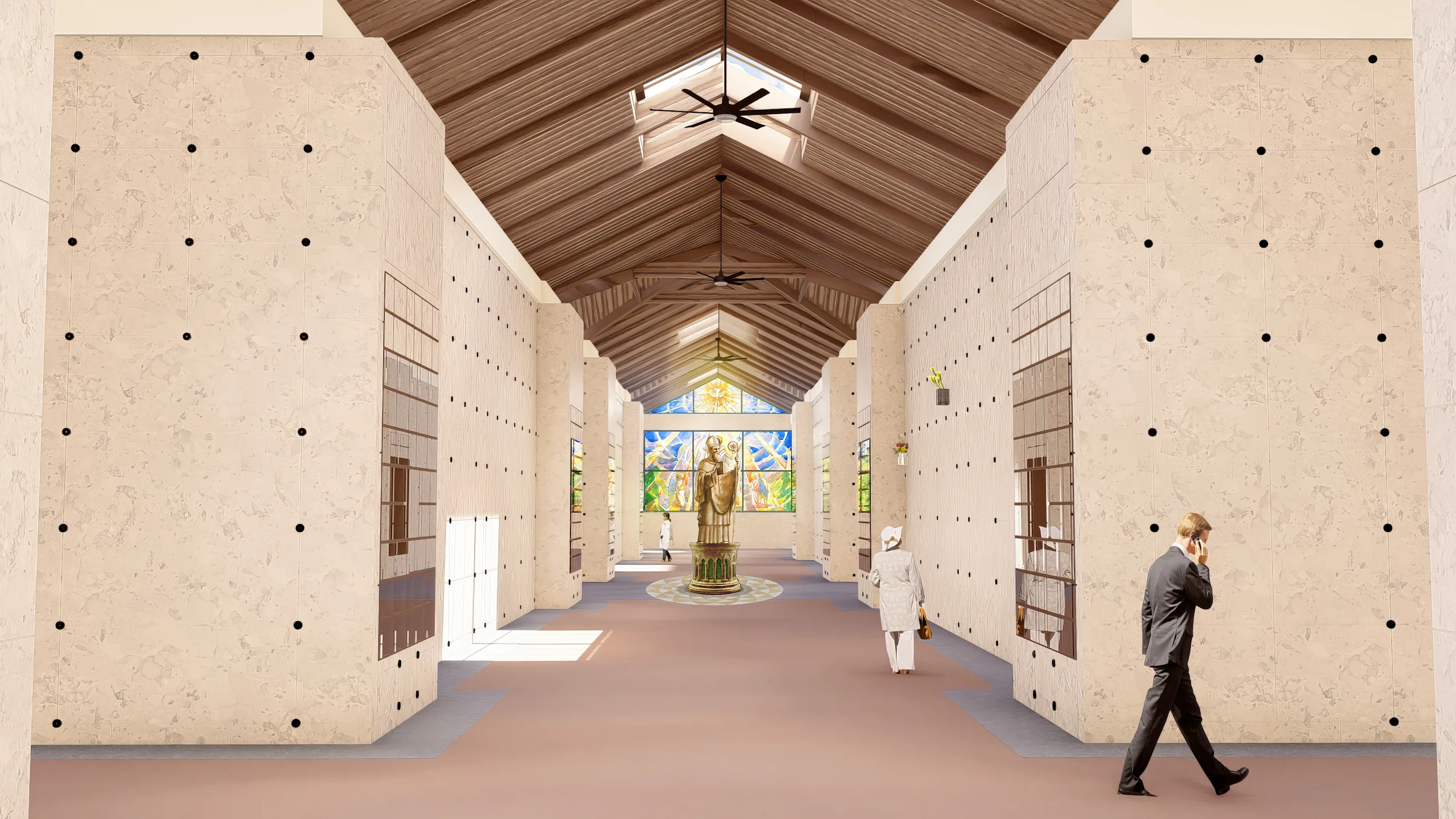 Acting now also enables you to secure pre-construction pricing at all price points, while securing your crypt or niche placement. For example, a crypt at eye level, in the presence of a favored saint, or one of our select private family rooms for up to 8 family members. The Mausoleum is more than 60,000 square feet. Temporary entombments are available while the Mausoleum is being constructed; and Mausoleum crypts (for caskets) and niches (for cremation urns) purchased now are guaranteed.